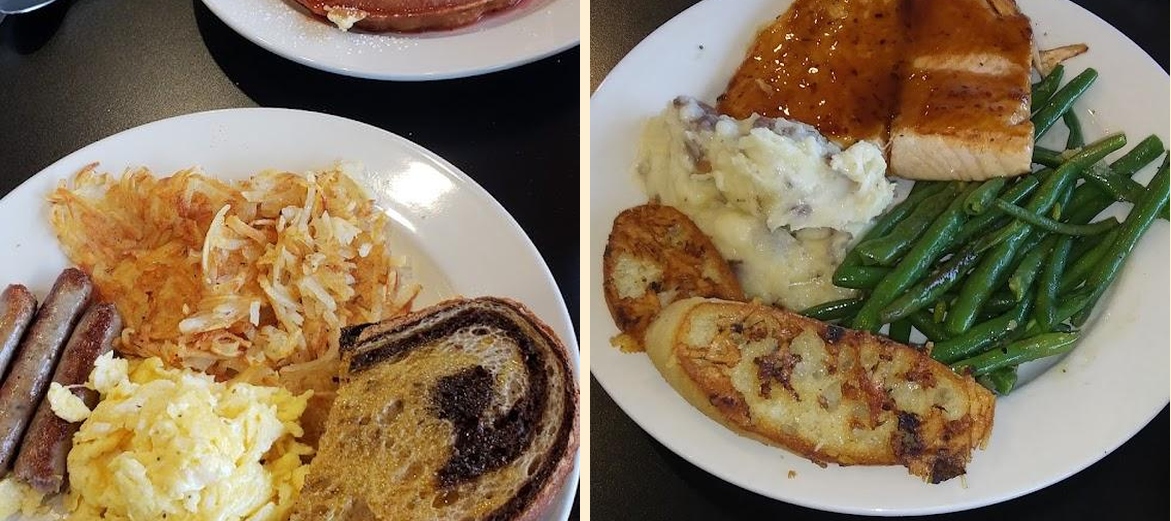 Try the Granola Pancakes or the Baked Cinnamon Oatmeal for breakfast. At lunch, the Oriental Grilled Chicken Salad is a hit. Don’t miss the desserts like Apple Cobbler with Ice Cream.